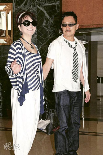 拉姑与胡须Kong穿着黑白条文情侣装到医院探望张柏芝及孙子