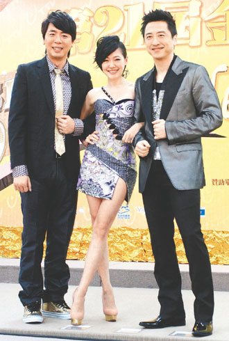 第21届金曲奖主持群梁赫群(左起)、小S、哈林,昨天共同为金曲奖活动宣传。