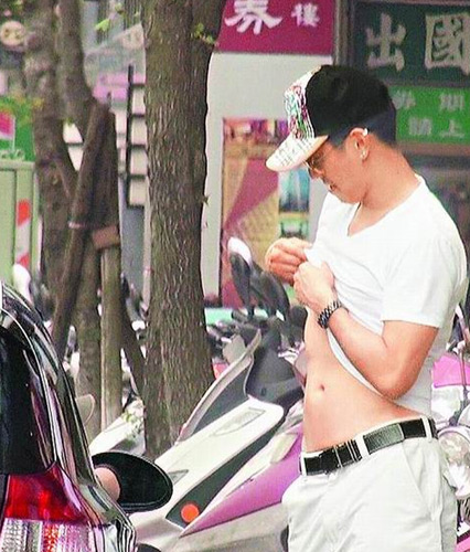 林韦君与猛男马路上舌吻 男方掀衣秀胸肌调情(图)(3)