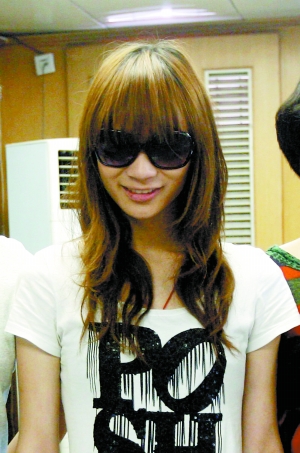 因为刚参加完比赛,刘著没有化妆,戴个墨镜就来了重庆。当摄影记者拍照时,爱美的他一再要求要戴上墨镜。在本报门口,刘著摆出了自己最招牌的V字手势做可爱状。