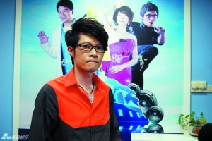 湖南卫视的爆料人“舞美师”前日在浙江卫视《我是大评委》之“麦霸英雄汇”直播露面,首次现出真容(下图)。让人大跌眼镜的是,一直以“舞美妹妹”自居、并且用广东台主持人赵荣的照片作为头像的舞美师,居然是一名卷发、戴眼镜的年轻男子。