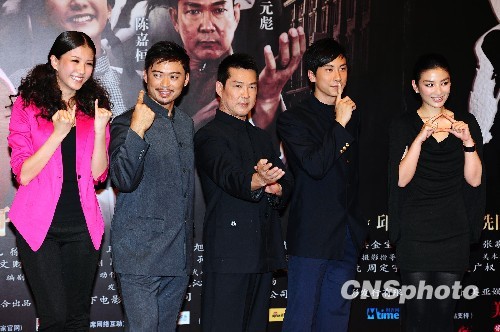 图为(左起)主演陈嘉桓、樊少皇、元彪、杜宇航、黄奕。中新社发 李学仕 摄