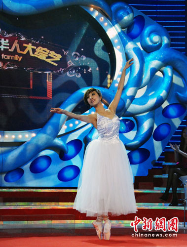 中新网5月25日电 近日,金巧巧受邀在东方卫视录制《华人大综艺》节目,并在现场一展深藏多年的芭蕾舞姿。因金巧巧在2010上海世博会期间,积极宣传世博,树立起世博明星志愿者的榜样,上海世博会大使成龙为金巧巧颁发“世博明星志愿者”证书。当晚,金巧巧一身白色素衣,头戴粉色大蝴蝶结,颇有Lady Gaga风范,金巧巧笑言这个造型是为了配合编导要求设计的,一点没有雷人的意思,相比还挺淑女。一同上节目的曾志伟造型也十分雷人,当晚嘉宾的服装都为世博会特别定制。