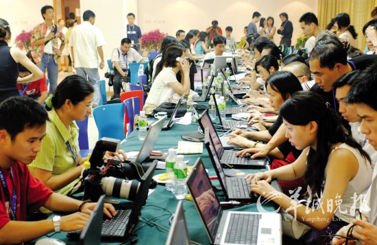 下午2时50分,录制马上要开始了。我经过主持人化妆间时见到了汪涵,突然想听听汪涵对这些“流程”的看法,便上前和他聊了起来,其间说到了“看图说话”,也说到了女记者们可能会“熊抱”他的“惊喜环节”。