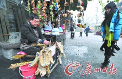 在成都锦里小吃街口有家草鞋店,店主叫刘畅,今年50多岁了,他自称是刘备的第60代后人,从事草鞋编织已经有20多年了。他在郫县有个作坊,雇佣了六七个员工,工人们负责编织草鞋、帽子、玩偶等产品,但是草鞋仍是小店的主打产品。因为历史上,刘备曾经和母亲以卖草鞋为生,所以,现在刘畅的很多顾客都是冲着他“刘备的后人”这个噱头而到他店里买草鞋的。