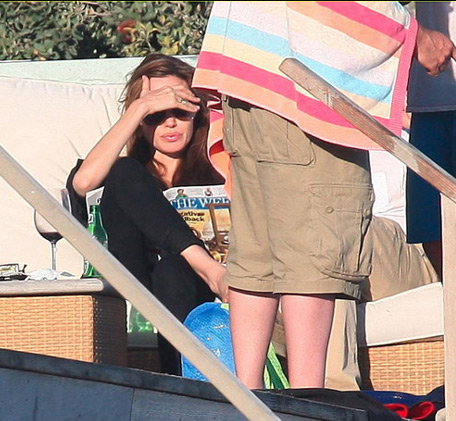 朱莉皮特带养子海边度假 跷腿聊天大秀幸福(图)(2)