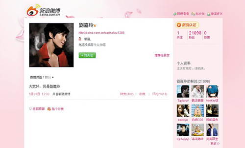 刘嘉玲和梁朝伟的爱情故事如同一出肥皂剧,两人历经磨难,分分合合,最终在结束了长达20年的爱情长跑之后,于2008年在不丹完婚。此次夫妻双双开微博,且开博时间相差仅一天,这是否两人同时培养出的新情趣?“没准儿两人商量好了,一起开微博,看谁的人气高。刘嘉玲高调地选择不闻不问,梁朝伟踏踏实实地参与互动,这也挺符合两人个性。”有网友这样猜测。