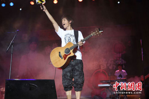 中新网6月3日电 “陈楚生和咪咕的朋友们”百校音乐会6月2日来到济南,当晚,陈楚生携乐队走进山东财政学院,并为财政学院的同学们以及来自各地的花生奉献了一场豪华的livehouse show。