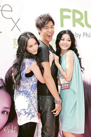 中新网6月7日电 钟欣桐(阿娇)与陈伟霆(William)、诗雅昨午出席电影《前度》慈善义卖签名会,他们重演海报中两女一男的拥抱画面,阿娇与诗雅均用手按William的右胸,令被“胸袭”的William大叫,说不习惯宣传被摸胸。阿娇笑说自己都好介意,因William胸肌劲又多汗;诗雅则感到好尴尬。