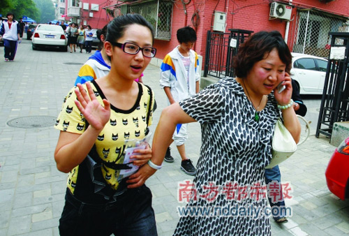 对比张一山,走出考场的杨紫对于场外众多关注则显得有些不适应,一直用文具袋挡脸称“不要拍”,直至前来接送的母亲让女儿“(文具袋)拿下来吧,让他们拍几张”,杨紫才冲着镜头含蓄一笑,但对上午考试情况只字未提。杨紫的母亲透露杨紫当天考试并不紧张,上午的语文考得还行,并表示:“杨紫已决定考北京电影学院,考前一段时间每天都在紧张复习,压力较大。”