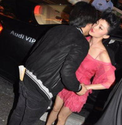 面对这样的场面,周迅从容下车。但没想到的是,站在车子旁边的一人,似乎是这次名牌派对的主办人:他一看见周迅,就好像是看到了老朋友,马上趋前就给周迅来了个熊抱,当时周迅似乎还没有回过神来。此男子进“百尺竿头”, 更进一步,又拉着周迅的手不放,接着更来了个西方礼节:跟周迅在大庭广众下进行贴面礼!。但另一方面,仍然紧抱着周迅不肯放,眼神也十分猥琐,明显有揩油嫌疑。