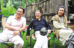 竹林深处,清水池边,“小鞋匠”小沈阳为了寻找心爱的公主,带着对江湖的崇拜,背起竹笠和竹篓,骑上心爱的小毛驴开始闯江湖啦!一路上的湖光山色,看得他好不起劲。记者昨日探班的,就是这个听上去超级“简单”而惬意的镜头。可是,就这么简单的场景,导演朱延平楞是来来回回拍了无数遍,还数次走到小沈阳身边面授机宜。难道是小沈阳演技太差?朱导演忙说非也,原来是小沈阳骑的那头小毛驴不配合。它不是不肯朝前走,就是不愿意边走边配合着吃小沈阳拎在手里吸引它的胡萝卜。看几回走下来,小沈阳的笑容都僵在了脸上,导演一说停,他立马跳下驴,走向后场,打个电话,再抽根烟提提神。“人好拍,动物难拍,没拍50次算不错了。小毛驴我们都饿了它一个上午了,就是想让它能对胡萝卜有点兴趣。”朱导演有点无奈。