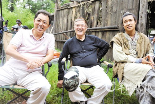 拍完下午的这场戏之后,赵本山来了。《大笑江湖》是赵本山首部参与投资的电影,他在片中演一个“河盗”。朱延平透露,赵本山在这部戏里将会有一句“流行语”:“江湖险恶,不行就撤。”赵本山的这个“河盗”表面上无恶不作,骨子里却懦弱卑微。身为强盗的他武功“半桶水”,还被小沈阳这个完全不会武功的鞋匠连煽耳光。在打斗戏上,小沈阳会吊钢丝“飞来飞去”,本山大叔则表示自己“老了,飞不起来了”。