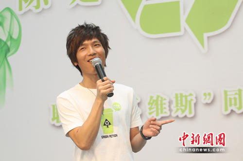 中新网6月12日电(王祎) 今天下午,陈楚生现身北京出席自己全新环保概念EP《绿动》发布会。为配合EP环保低碳主题,陈楚生身着自己设计的清爽环保T恤现身,希望通过音乐呼吁公众的环保低碳生活意识,并表示同属一个公司的李冰冰和周迅在环保代言和身体力行方面是自己的榜样。同时,陈楚生还透露自己难挡刚刚开幕的世界杯诱惑,独自熬夜观看了第一天的比赛。
