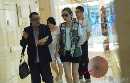 赵薇背着名牌包包,发现膝盖处有伤疤,还不慎露出白色安全裤。扎着马尾的她显得年轻朝气,丝毫不似当妈的人。 王小帅一路上叼着香烟,直到进电梯才扔掉烟头。