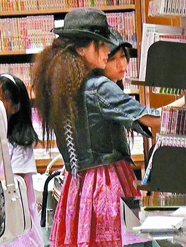 她(前)离台前到书店买漫画,狮子头发型抢眼。