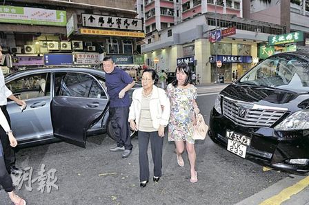 李嘉欣的绯闻男友刘銮雄昨晚出动吃晚饭,腹大便便的前港姐吕丽君小心翼翼拉着刘銮雄的母亲。