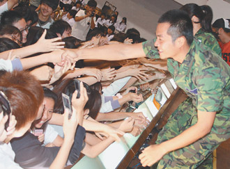 姚元浩(右)昨为《新兵日记》宣传,觉得女友隋棠已经很瘦了。
