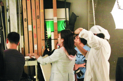 在首天拍摄的6个小时内,片场还出现了两位重量级的客人,导演王小帅的出现让赵薇很是兴奋,两人还很哥们地搂了搂肩膀,王小帅也幽默表示“我是专程来看看薇姐的”。随后赵薇便利用摄影师调整布景期间和他聊了起来,甚至打趣说“导演你怎么不找我拍电影呢”,而王小帅也回应说“你这不是老没档期啥的嘛”。随后赵薇又说:“一会儿我还有个朋友要来,大家一块聊聊”,之后还和该朋友打了几个电话。不久,赵薇所说的朋友“紫薇”林心如就出现了。三个人坐下来兴奋地聊了很久,话题也是从星座聊到工作,嘻嘻哈哈一路开心,甚至还碰杯喝红酒。聊到工作的时候赵薇还开玩笑说:“不然我开个公司,把导演给签了,然后把心如也签了,我们就可以一家了呗。”