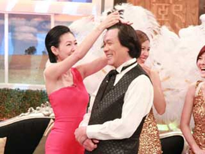 中新网6月24日电 昨天,台湾地区的“秀场之王”猪哥亮到小S主持的《康熙来了》做宣传,不但破例让主持人小S拨弄宝贝秀发,还一口气向她告白三次。但节目中请来的好友一露面就催债让猪哥亮当场翻脸,小S吓得赶紧下跪求饶。