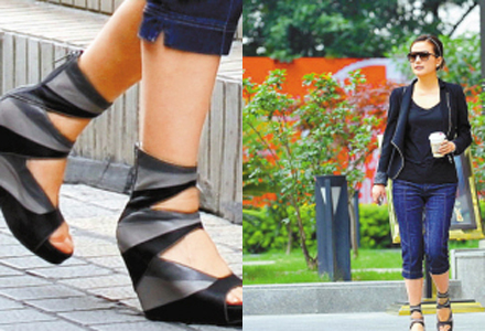 赵薇踩十寸高跟鞋出街