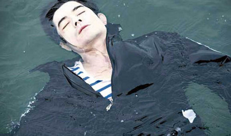 郭富城在海中载浮载沉,随时成为鲨鱼点心