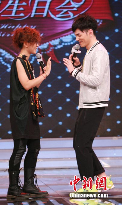 中新网7月15日电 近日,周笔畅做客深圳卫视大型明星情感秀节目《大牌生日会》。亲朋好友到来令周笔畅现场活跃,不但与李晨大跳恰恰,还展示“熊猫舞”,可爱动作令全场气氛火爆。摄影/王忠燕