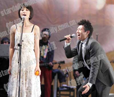 当天,在充满了金属质感的舞台上,高圆圆一袭长裙,清纯妩媚;夏雨则是西装革履,标准的白领打扮。摇滚味道的歌曲和热辣的现代舞让夏雨突然变得激情四溢,在他激荡的歌声中,高圆圆也来了段节奏舒缓的说唱乐表演。孟京辉告诉记者说,原本他想让夏雨和高圆圆对唱,但因为高圆圆不太敢当众唱歌,他便让高圆圆改玩儿起了说唱乐。记者看到,高圆圆惟一一次展现其歌喉,是在一段“啦啦啦啦”的合声当中。由于有跟夏雨合唱,高圆圆拿着麦克风唱得十分卖力,全然没了台下的羞涩。