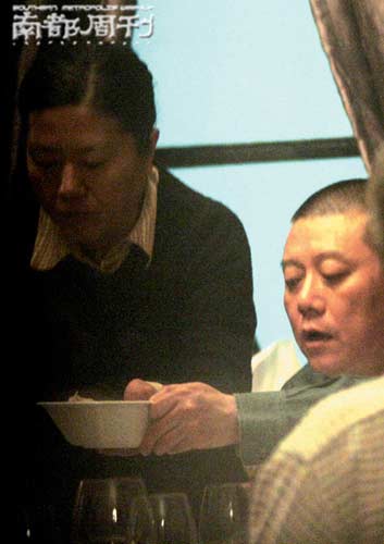 当晚六点左右,王朔驱车来到高安路一处私宅——作家沈宏非的杂志社内,和王安忆、陈村等其他上海著名作家会合,黄色灯光柔和地将这场私人聚会的气氛渲染得温馨十足,不知是否墙上那道“天下美食府”的牌匾刺激了食欲,王朔在这个近十人的晚宴上大快朵颐,并且谈兴甚浓,虽然在座都是大牌作家,但基本上是王朔一人侃侃而谈,每每在他话毕之时总能传来爽朗大笑,看来王朔虽然充满了表达欲,仍然是大家的开心果。这样一顿相谈甚欢的西式饕餮晚宴持续了两个多小时,桌上的五六瓶红酒很快见底。席间还有人用相机记录下这觥筹交错的时光。陈村一直在席间给大家拍照,显得非常卖力。酒足饭饱后,王朔在晚九点离开“美食府”,为了证明自己精力充沛,从大门到上车这短短的距离王朔还是跑的,健步如飞。很快,黑色宝马就载着他绝尘而去。(记者 秦耀辉)