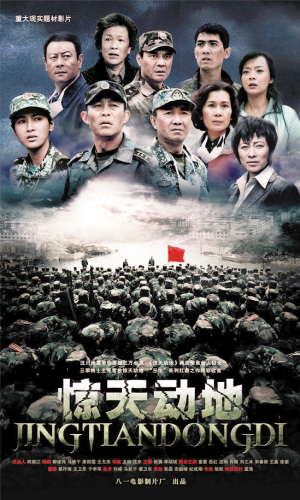 在纪念汶川大地震一周年之际,八一电影制片厂举行了再现部队官兵抗震救灾的故事片《惊天动地》的看片会。参拍部队和四川灾区群众代表共同出席了看片会。