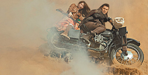 据台湾《联合报》报道,“刺陵”中,周杰伦饰演的探险家和志玲演的小说家,拿到藏宝图,被各路歹徒追杀,周董和志玲跨上重机车,和“铁面人”马队就在漫天黄沙“尬”了起来。
