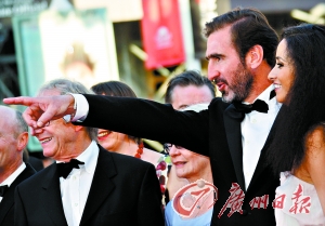 绰号是“国王”的前曼联球星坎通纳前日(18日)在一片球迷的欢呼声中来到戛纳,出席他出演的电影《寻找埃里克》的首映式。在首映式前的记者会上,坎通纳的风头盖过了英国导演肯·罗奇,成为记者提问的对象,电影记者会变成了一场球赛发布会,“足球”占领了电影宫。