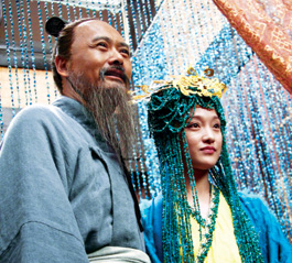 周迅在《孔子》中和周润发只有一场戏。虽然戏份少,但华服却让她大开眼界。“我只能用精致来形容这两件衣服,一件是孔雀羽毛做成的;身上这件的头饰都是一颗颗的小石头串起来的,差不多有10斤重,时间长了我的脖子都承受不了,还得有人帮忙扶着。”