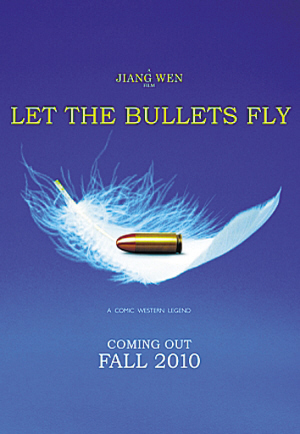 昨日,中国导演姜文的新片海报在戛纳亮相。这幅简洁而极具冲击力的海报以子弹和羽毛为主构图,英文片名《Let the bullets fly》(《让子弹飞吧》)随之曝光。海报上主打的概念“喜剧、西部、传奇”,透露出这部新片可能会是一部与姜文以前作品不同的商业大片。