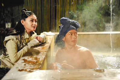 “面对着赤裸上身滑潺潺的古仔,总是感到有点难为情。”大S说。于是古天乐经常跟大S开玩笑,又向她泼水,让她演出更放胆,更因古天乐头上的蝴蝶结毛巾而笑得要NG。两人虽然曾经在动作片合作,但今次拍喜剧,大S又觉得古天乐在笑位方面拿捏得很准,大赞对方是不可多得的多元化演员,要多多向古天乐学习。