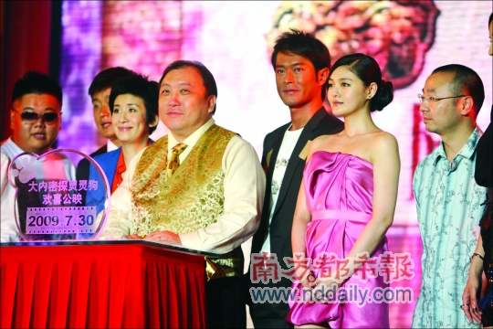 本报讯 (记者孙锐)昔日,一部《大内密探零零发》让所有看过的人笑到流泪。2009年,王晶导演又带来了他的全新力作,古装喜剧《大内密探灵灵狗》。昨天,这部即将于7月30日在全国公映的影片在北京举办了名为“晶喜宴”的盛大首映礼,王晶携古天乐、大S、吴君如、佟大为、小宋佳、刘仪伟、那威、刘洋、李源、冯惠媛等主创齐集亮相。而张靓颖则现场放歌《我的音乐让我说》,以此来庆祝《灵灵狗》首映。