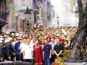 关机仪式在剧组耗资5000万元、以1:1比例还原的“1905年香港中环”举行。正是在这个堪称中国电影史上最大规模的单片布景里,甄子丹、黎明、胡军、谢霆锋、范冰冰、李宇春等饰演的爱国义士各显神通,拯救了被清政府追杀的国父孙中山。根据剧组透露的资料,《十月围城》拍摄历时113天,经历了9场大雨、36次吵架,拖延11天,终于迎来杀青之日。