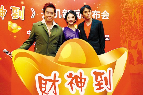 中新网10月22日电 电影《财神到》昨日在上海举行开镜发布会, 监制黄岳泰、导演阮世生率影片主角谭咏麟(阿伦)、张震、张雨绮出席。阿伦时隔24 年再演“财神”一角,在片中“送财”的他,生活中也不忘筹钱接济成奎安(大傻)妻儿。