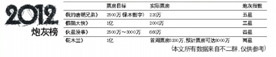 被博纳公司寄予厚望的《熊猫大侠》曾经喊出过“票房比《十全九美》翻番”的口号,《十全九美》票房5400万,《熊猫大侠》的目标显然就是过亿,但截至11月30日,票房2000万,按照票房提供的800万的制作成本,勉强持平。