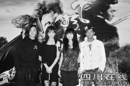 相比郭富城的一本正经,郑伊健很会增加访问的喜剧氛围,不断地和身边的阿Sa开玩笑,“嗯,以前我都是把她当哥们,没有一点女人味,这回演《风云2》,她终于有那么一点点女人味了。”一席话令阿Sa羞得满脸通红:“反正他一直把我当弟弟或者妹妹啦,他很坏的,有一次买了一台手机,向我大力推荐,其实对于这种高科技的东西,我一向比较白痴,结果我买回来不会用,一个星期后只好放弃,再也没用过。”说得旁边的郑伊健又大笑起来。阿Sa还抱怨自己《风云2》中的对白太少,“只说了大概6次的‘风哥哥’和1次‘云哥哥,你别打了’,我希望下次导演能拍个女版《风云》,让我和唐嫣也能成为真正的主角,巾帼不让须眉嘛”。阿Sa还表示,自己一定会去给郑伊健的演唱会捧场,”我买了5张票,因为他是我的大佬(大哥)啊。”