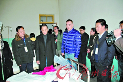 前晚,《赵氏孤儿》看台坍塌后,导演陈凯歌、演员王学圻与当地政府官员一起赶往医院看望伤者。(记者 程雪超 通讯员 黄金)
