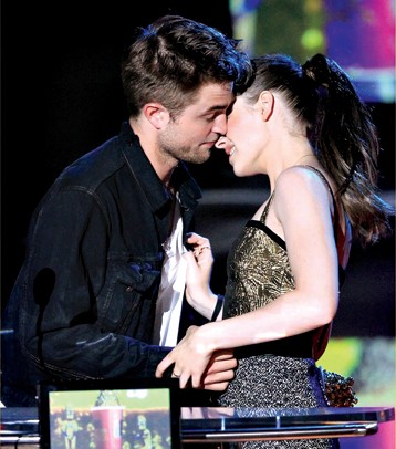 《新月》受追捧主要因为男女一号罗伯特·帕丁森与克里斯蒂·斯图尔特的化学作用。而在戏外,两人也是好莱坞的一对“明星情侣”。昨日,摘得“最佳接吻”奖的两人当场为在座观众献上一吻,引来尖叫无数。