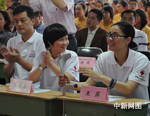 中新社绵阳五月十一日电(记者 唐伟杰 肖青)十一日上午,王菲、李亚鹏夫妇等护送三位灾区孩子返回北川,这是他们倡导发起的“汶川新家庭”助养计划的第一批孩子。