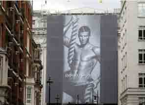 中新网6月12日电 英国足球明星贝克汉姆(David Beckham)11日在英国伦敦百货公司为名牌内衣造势,吸引大批媒体和粉丝,而贝克汉姆半裸的性感海报曝光时,更是引来一阵尖叫。