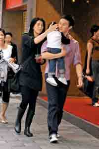 当张智霖和太太、儿子见面后,袁咏仪发现有记者在场,面色即变得非常紧张,更吩咐儿子不要望向镜头,其后两人带儿子上保母车,交由工人代为照顾,二人即走入商场。