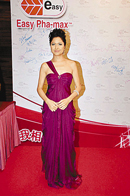 中新网6月30日电 邵美琪(Maggie)昨日以紫色低胸礼服出席代言的产品一周年庆活动,吸引了大批人要求合照。