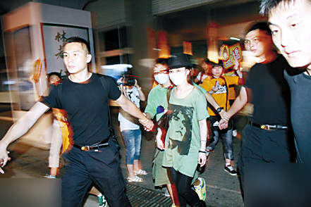 7月11日晚上7时,阿娇抵达哈尔滨参加嘉年华活动。她出机场时头戴礼帽,面戴口罩,二十多名贴身保镖护驾。她身穿一件印有墨色男人头像的大T恤,无独有偶,陈冠希7月10日在香港出席陆永“栋笃笑”演出拜神仪式时,也穿着同款式T恤———这对旧情人真是心有灵犀!