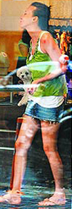 昨天,在台风过境的台北街头,大雨下不停,萧美人带着爱犬在专柜血拼。她穿着牛仔短裙、夹脚拖鞋,脂粉未施,长发随兴用鲨鱼夹盘起,气定神闲斜躺在店内的玫瑰花椅上,一边摸狗一边指挥店员将衣服装袋,有如“老佛爷”。