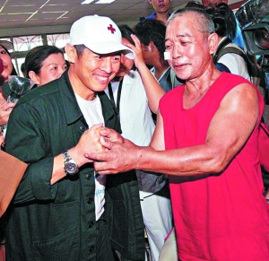 李连杰8月13日起带着物资深入台湾灾区,为备受超级台风莫拉克摧残的台湾中南部灾民及义工打气。前日他继续探访灾区,有灾民向他哭诉:“我家全没了!”李连杰赶紧握住他的手给予安慰,场面感人。不过也有轻松的时候,李连杰所到之处,大批灾民和义工均蜂拥上前看热闹,许多年轻女义工更是尖叫着将他团团围住,李连杰只能笑说:“这么围着,我怎么探望灾民啊。”