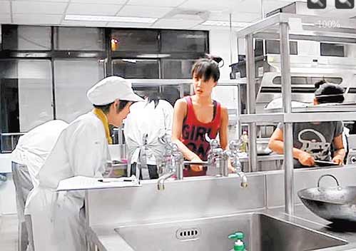 中新网8月18日电 最近,蔡依林(Jolin)在台湾餐饮学校学烹饪的消息曝光,时隔1周,小天后准时到学校报到。她在厨房里身穿紧身低胸背心,认真做菜,切菜摆盘有模有样,不时还跟身旁的老师请教:“所以是这样弄喔?”神情认真。